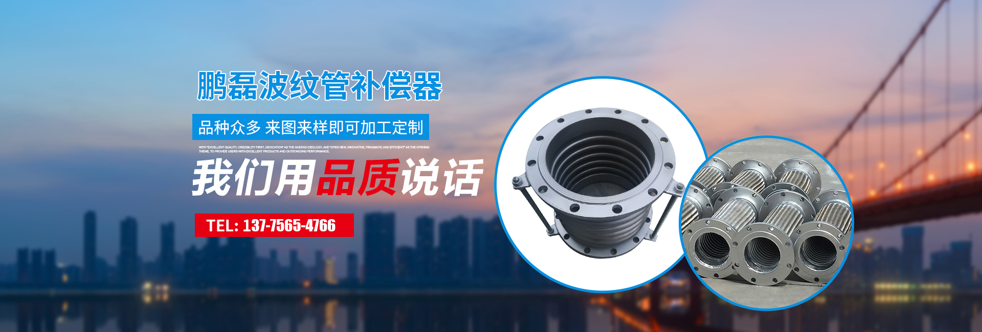 兴化市鹏磊不锈钢波纹管厂位于苏中平原张郭镇,临近宁通、宁靖盐高速公路交通便利,距上海、苏州、无锡南京等大中型城市不超过2小时的车程。我厂按GB/T14525/QJ811标准和参照ISO7314标准设计生产的不锈钢软管、不锈钢补偿器、内补聚四氟乙烯软管、内补聚四氟乙烯补偿器在冶金、石油、化工、航天、真空设备、医药、制冷、橡胶、建筑、食品、运输等诸多行业中得到客户的认可和好评